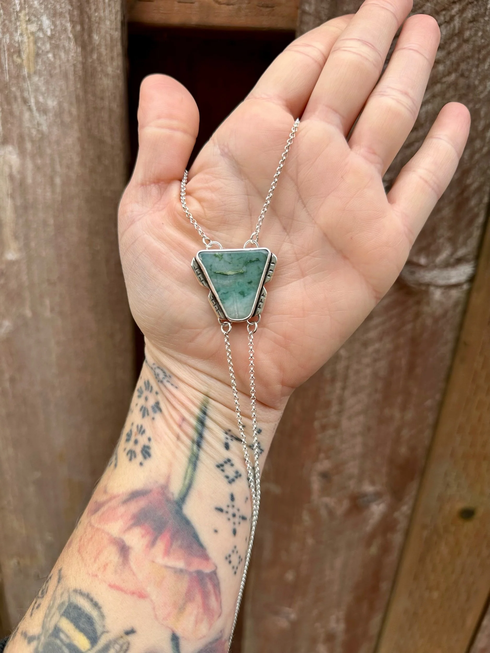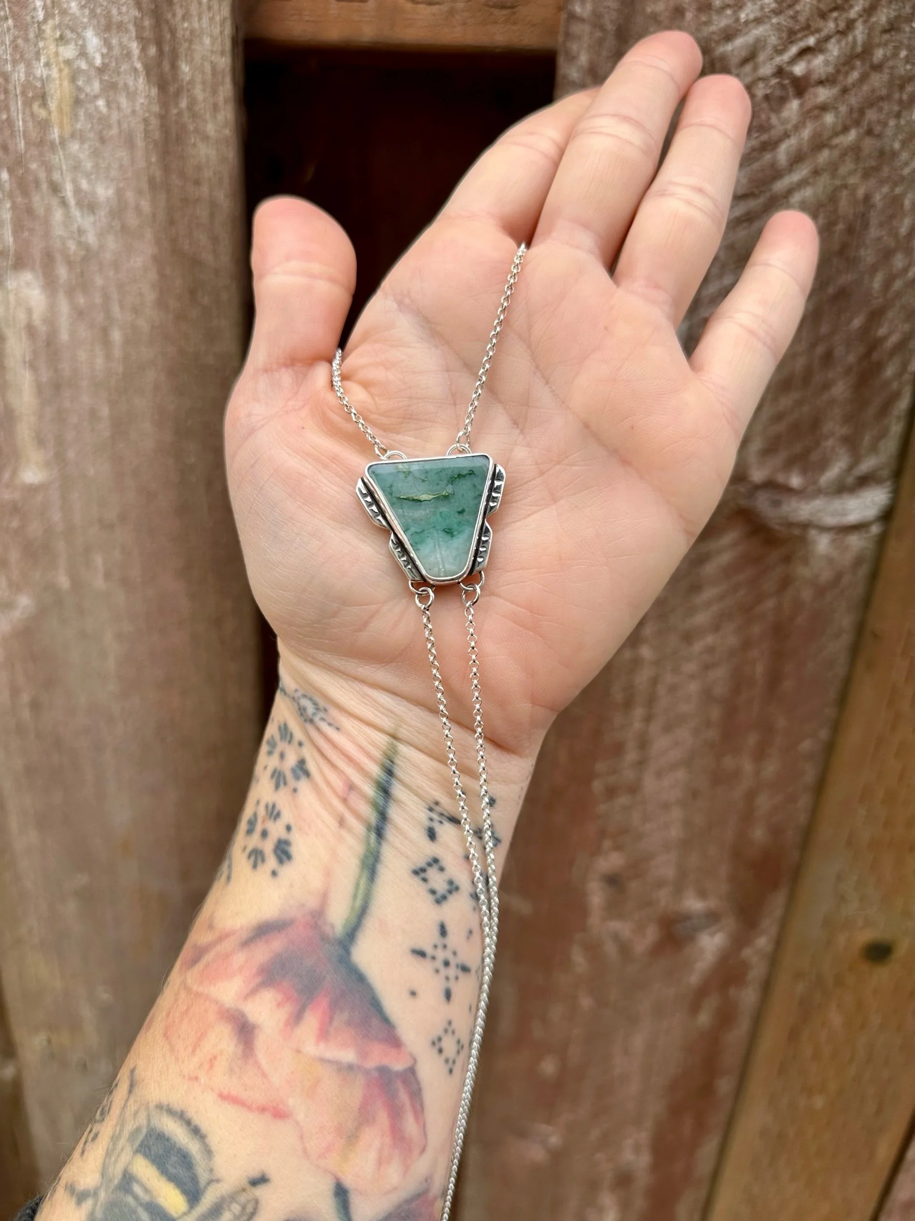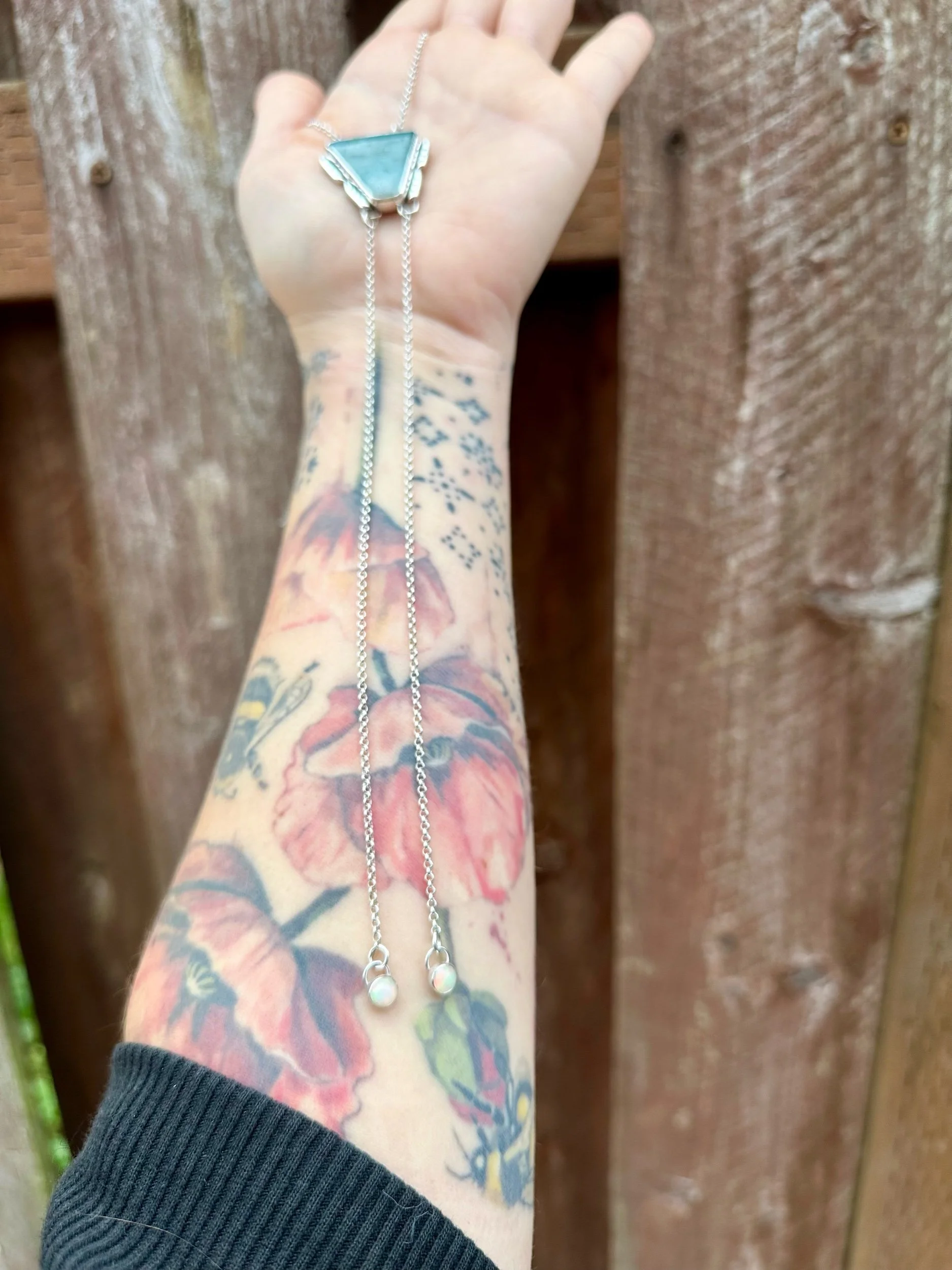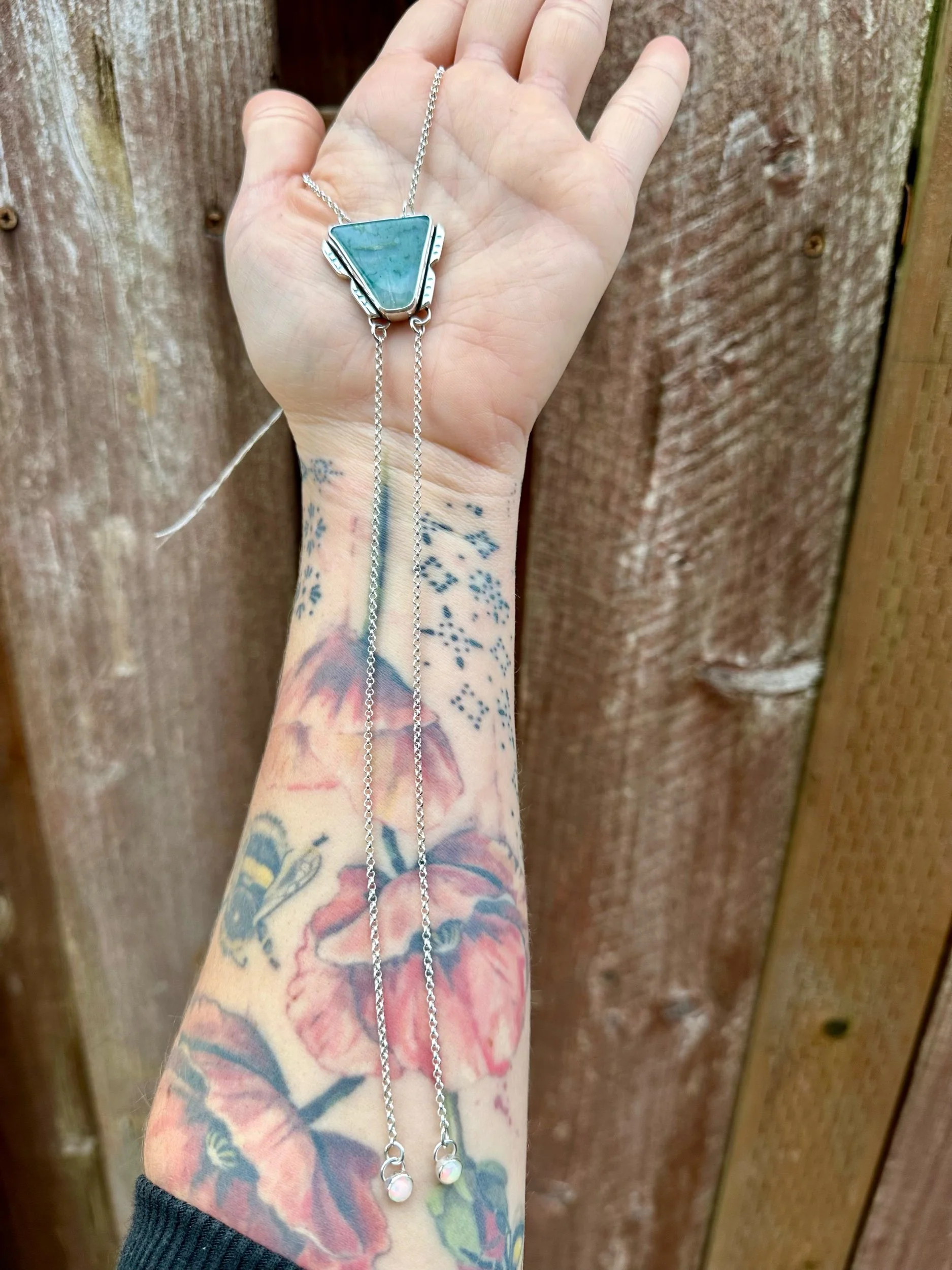 Shop › Chrysocolla & Opal Lariat/Bolo Image 1 of 5 Image 2 of 5 Image 3 of 5 Image 4 of 5 Image 5 of 5 Chrysocolla & Opal Lariat/Bolo $295.00 Chrysocolla & OpalStelring SilverHandcrafted in OregonOne-of-a-KindLength from top to bottom is 18.5” Add To Cart Added! Chrysocolla & OpalStelring SilverHandcrafted in OregonOne-of-a-KindLength from top to bottom is 18.5” Reviews Reviewer Name Review Date Star Rating Description Posted on Etsy Product Show More