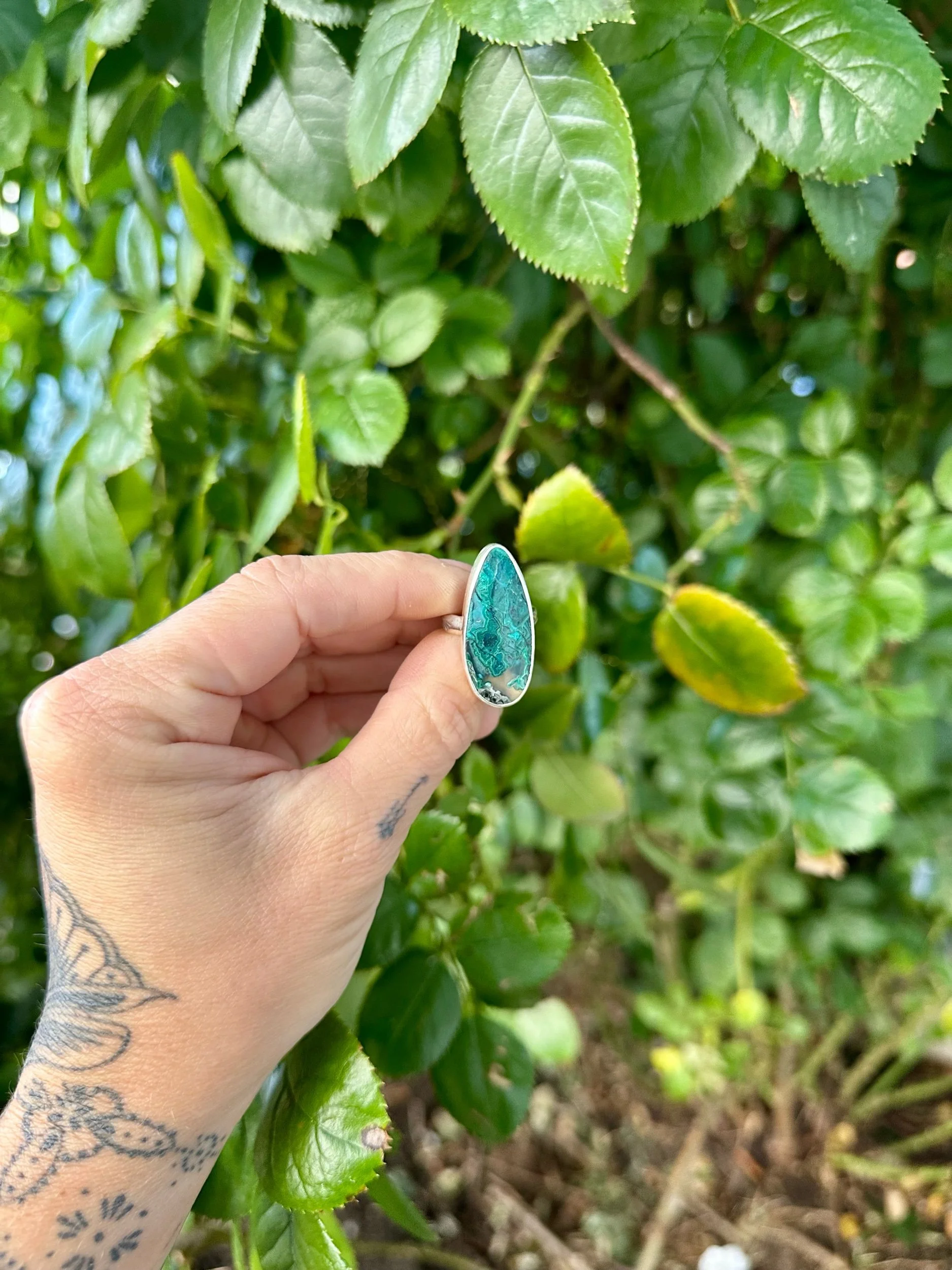 Shop › Gem Silica Ring - Size 5.5 Image 1 of 5 Image 2 of 5 Image 3 of 5 Image 4 of 5 Image 5 of 5 Gem Silica Ring - Size 5.5 $155.00 Gem SilicaSterling SilverSize 5.5Stamped BandHandcrafted in OregonOne-of-a-Kind Add To Cart Added! Gem SilicaSterling SilverSize 5.5Stamped BandHandcrafted in OregonOne-of-a-Kind Reviews Reviewer Name Review Date Star Rating Description Posted on Etsy Product Show More