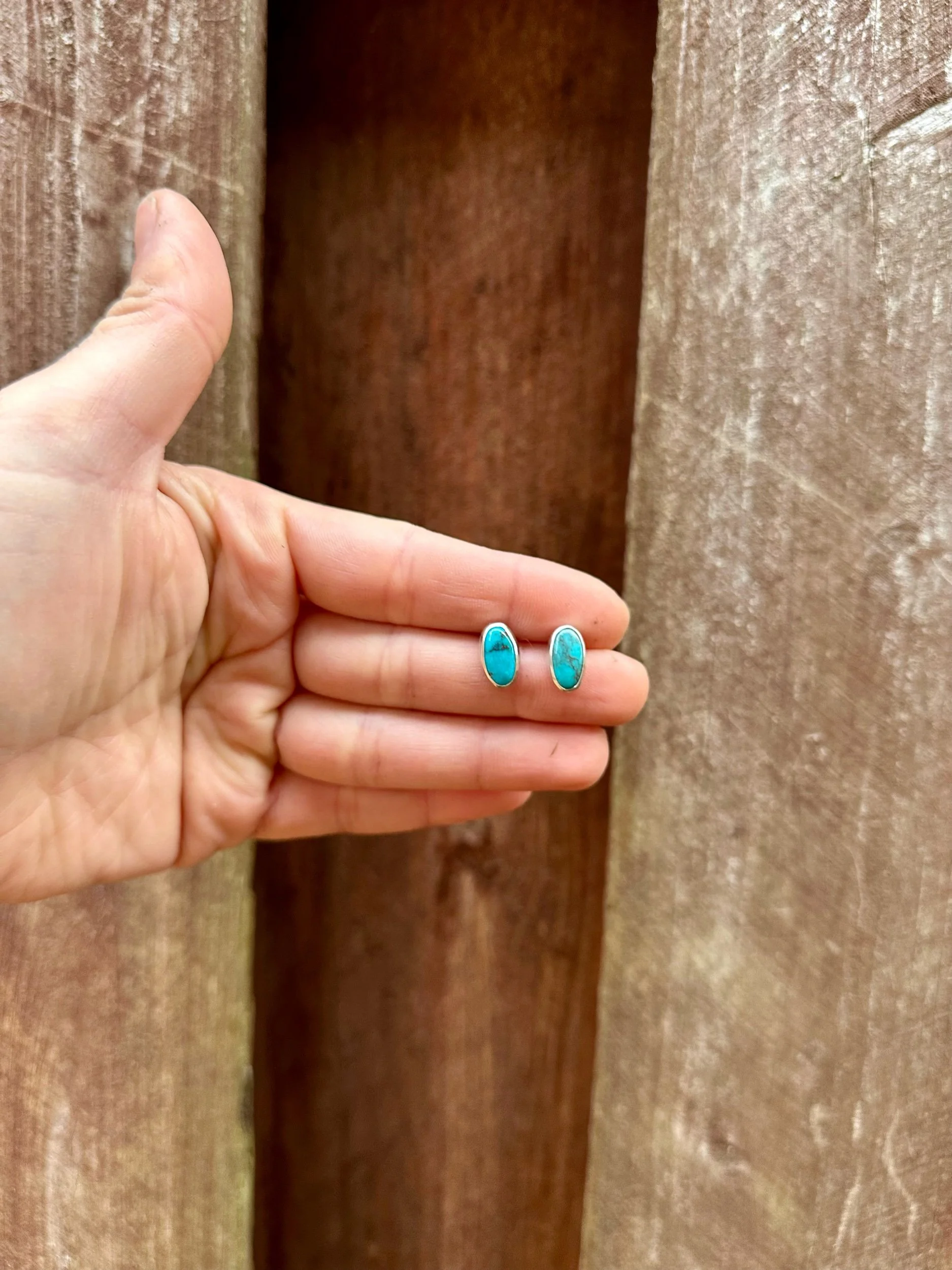 Shop › Turquoise Studs Image 1 of 4 Image 2 of 4 Image 3 of 4 Image 4 of 4 Turquoise Studs $95.00 TurquoiseSterling SilverHandcrafted in OregonOne-of-a-Kind Add To Cart Added! TurquoiseSterling SilverHandcrafted in OregonOne-of-a-Kind Reviews Reviewer Name Review Date Star Rating Description Posted on Etsy Product Show More