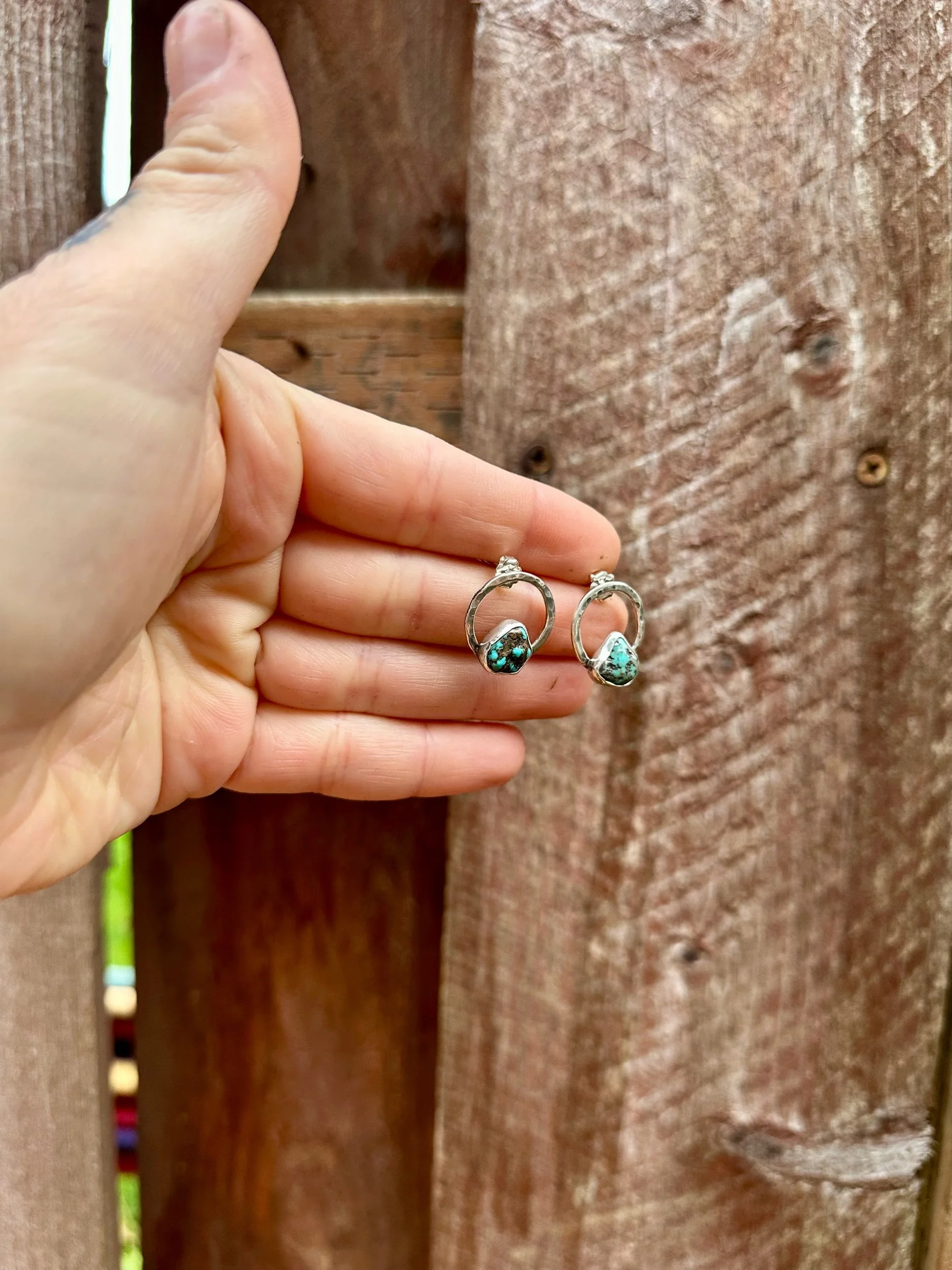 Shop › Turquoise Hoop Studs Image 1 of 4 Image 2 of 4 Image 3 of 4 Image 4 of 4 Turquoise Hoop Studs $125.00 Turquoise NuggetSterling SilverHandcrafted in OregonOne-of-a-Kind Add To Cart Added! Turquoise NuggetSterling SilverHandcrafted in OregonOne-of-a-Kind Reviews Reviewer Name Review Date Star Rating Description Posted on Etsy Product Show More