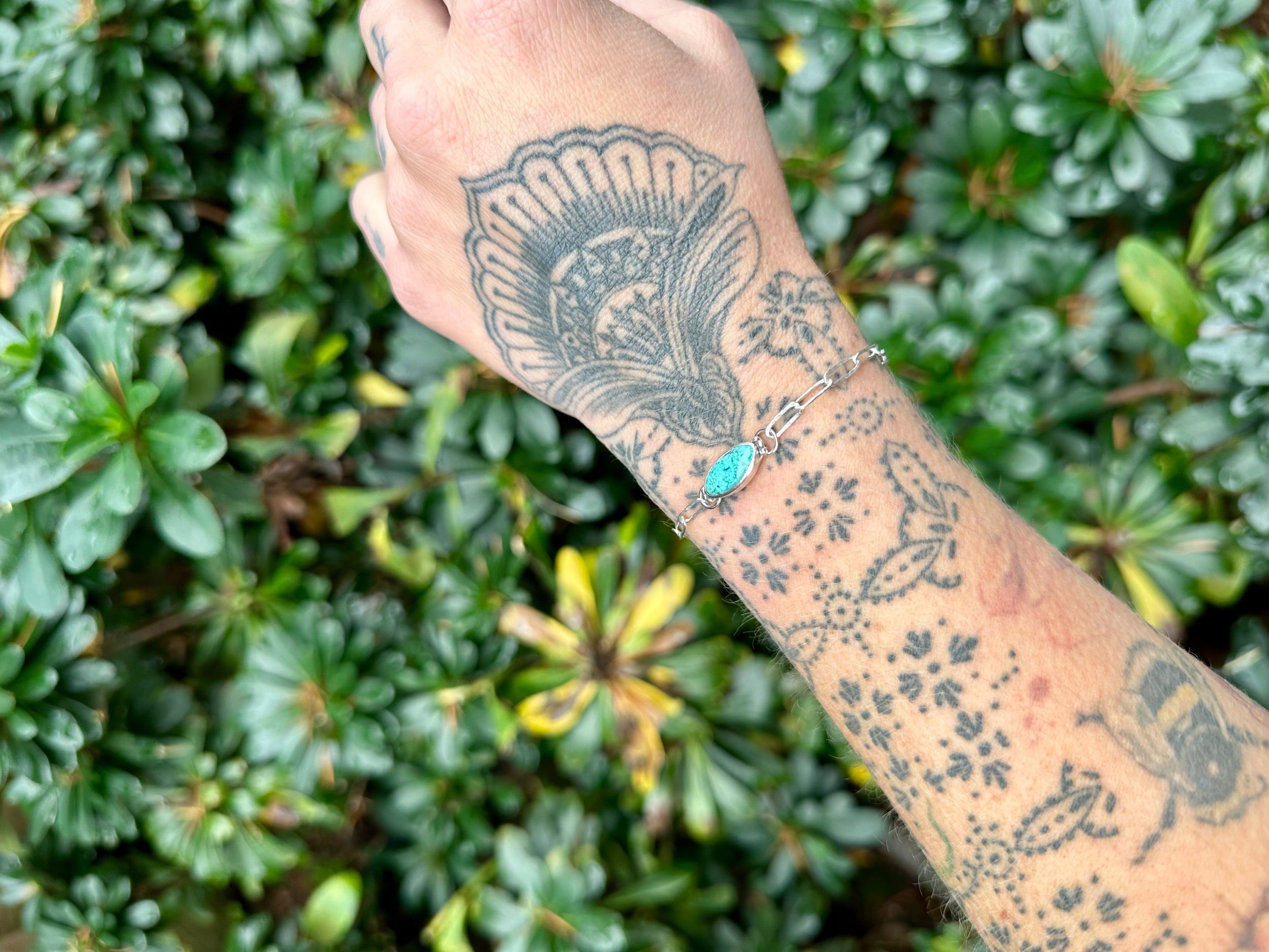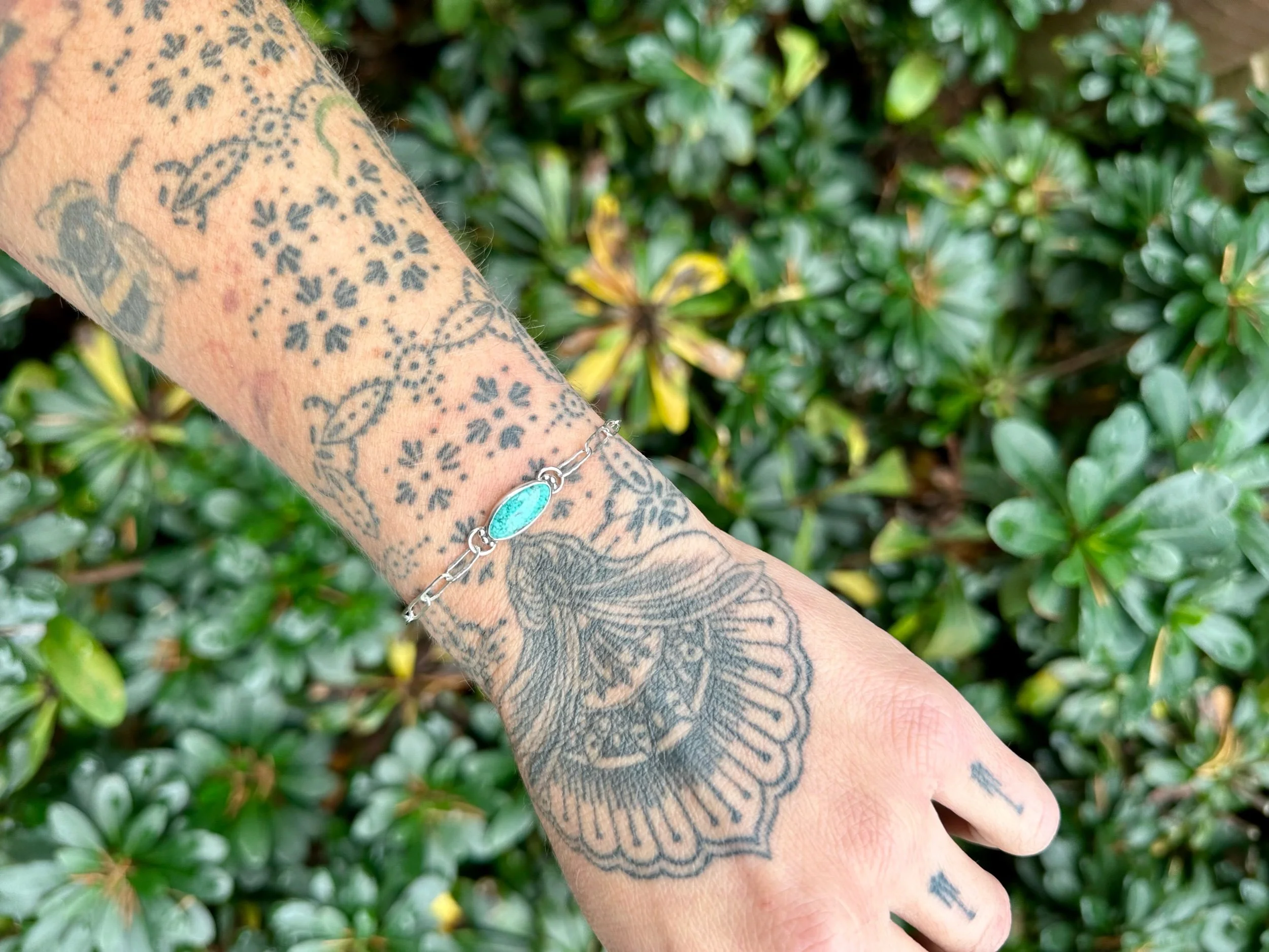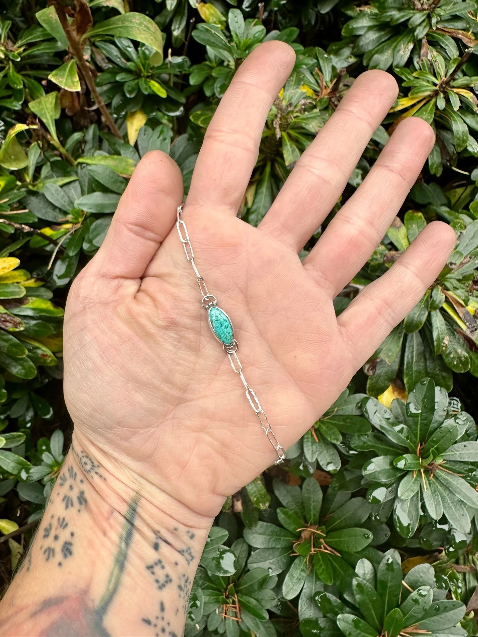 Shop › Adjustable Turquoise Bracelet Image 1 of 4 Image 2 of 4 Image 3 of 4 Image 4 of 4 Adjustable Turquoise Bracelet $125.00 TurquoiseSterling SilverAdjustable with total length being 8”Handcrafted in OregonOne-of-a-KindCould also be an anklet! Add To Cart Added! TurquoiseSterling SilverAdjustable with total length being 8”Handcrafted in OregonOne-of-a-KindCould also be an anklet! Reviews Reviewer Name Review Date Star Rating Description Posted on Etsy Product Show More