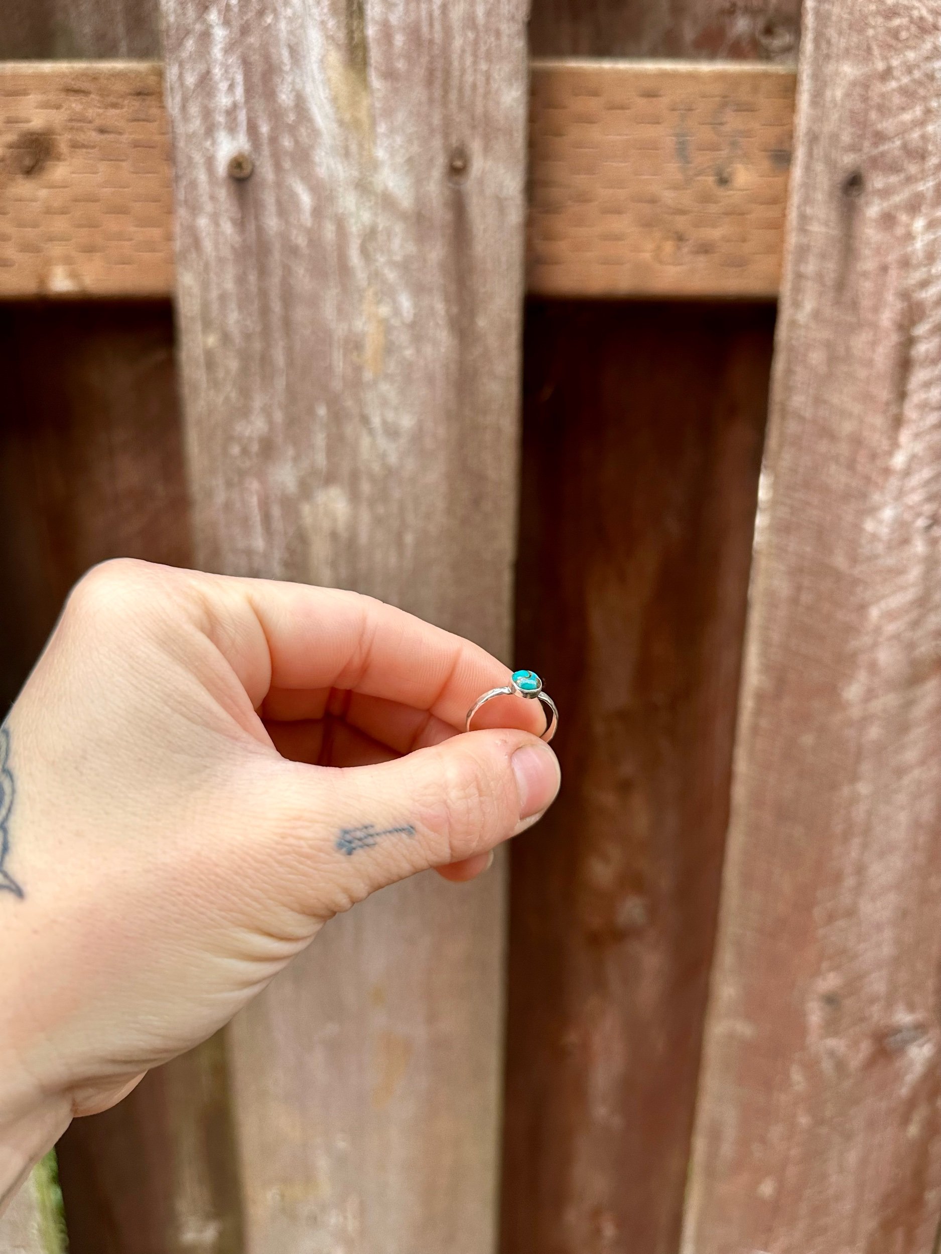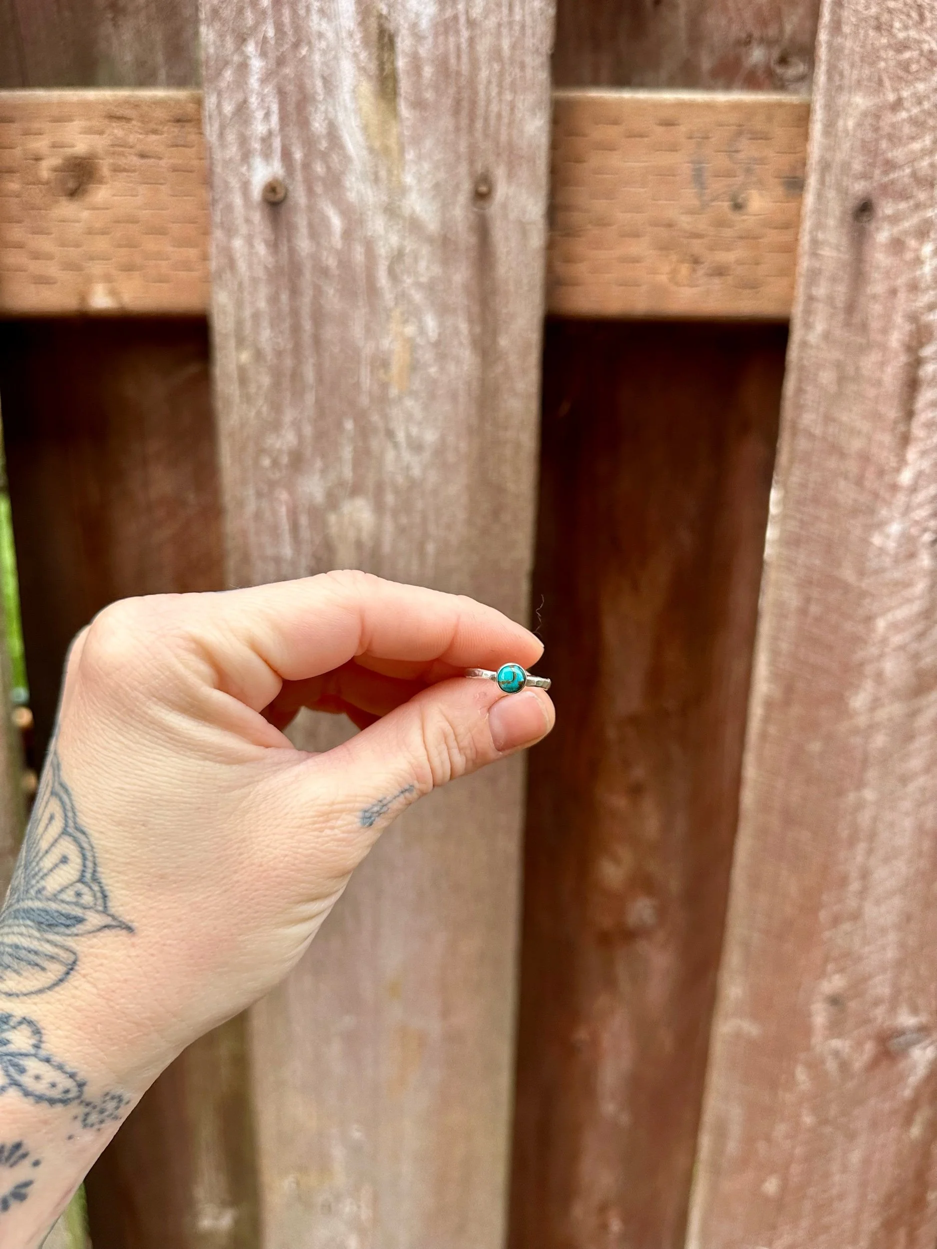 Shop › Turquoise Ring - Size 6 Image 1 of 4 Image 2 of 4 Image 3 of 4 Image 4 of 4 Turquoise Ring - Size 6 $65.00 sold out TurquoiseSterling SilverHammered BandSize 6Handcrafted in OregonOne-of-a-Kind Sold Out Added! TurquoiseSterling SilverHammered BandSize 6Handcrafted in OregonOne-of-a-Kind Reviews Reviewer Name Review Date Star Rating Description Posted on Etsy Product Show More